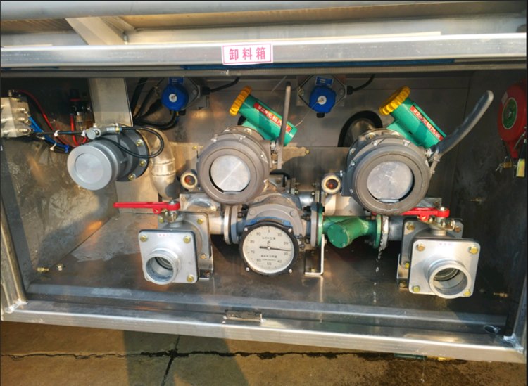 3.歐標下裝油系統(tǒng):氣動海底閥(緊急切斷裝置)、廢油氣回收系統(tǒng)、防溢流系統(tǒng)、API閥門(下裝油口,配圖如下)、變徑接頭、邊板閥、油耗顯示器、靜電卷盤。