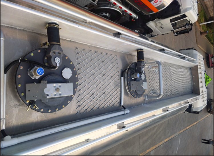 4.附件部分:鋁合金出口保護箱、鋁合金后爬梯、罐頂左右兩側鋁合金氣動舉升護欄(客戶在爬上罐頂時需要撐起來,起到保護作用)、鋁合金側防護欄、鋁合金加厚材質后保險杠、鋁合金工具箱一只、8公斤鐵質炮筒箱2只、全車LED示寬燈和后尾燈、全隱蔽式電氣路系統(tǒng)。